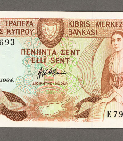 KIBRIS Cyprus 50 Cent 1984 UNC *çil banknot