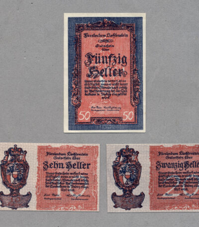 LIECHTENSTEIN 3 Banknoten UNC