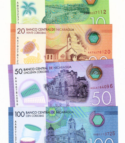 NICARAGUA 10+20+50+100 Cordobas 2021-22 Polymer UNC (çil) 4 banknotes