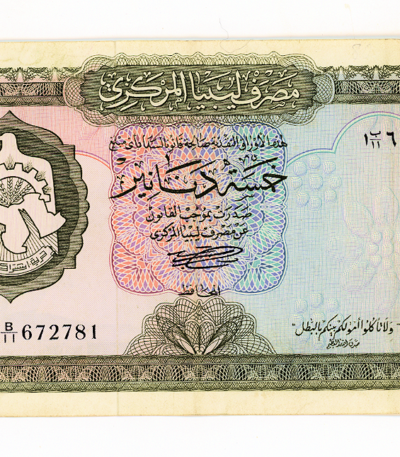 Libya 5 Dinar 1971 Pick#36b (with insription) VF – çt