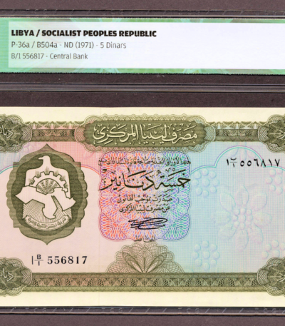 Libya 5 Dinar 1971 Pick#36a (without insription) ICG 55 *AU