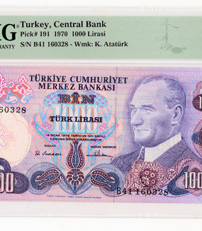 6. Emis. 1. Tertip 1000 Lira 1979-86 Pick #191 serial B – UNC çil banknot