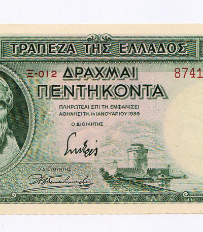YUNANISTAN GREECE 50 Drachmi 1939 aUNC *çilaltı