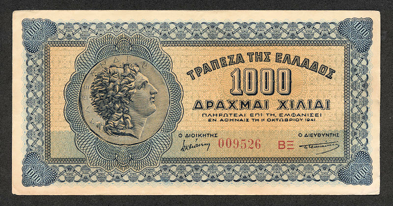 YUNANISTAN GREECE 1000 Drachmi 1941 aUNC *çilaltı