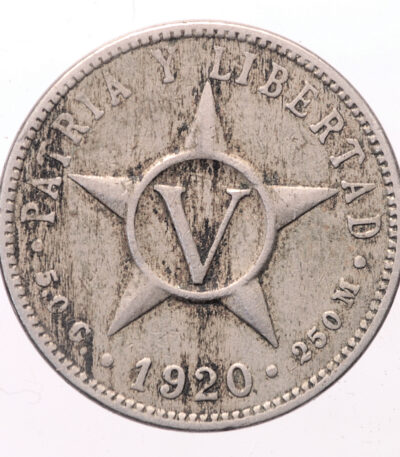 CUBA KÜBA 1920 YILI 20 CENTAVO GÜMÜŞ ÇİLALTI
