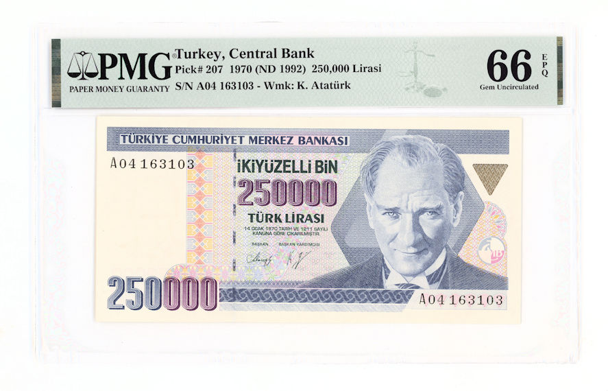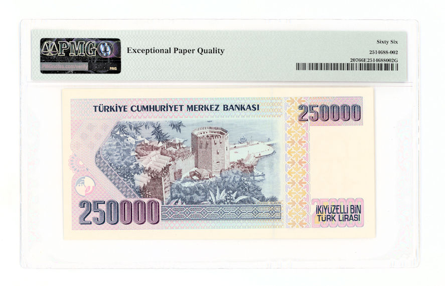 7. Emisyon 250 000 Lira Alanya ND 1992 PMG 66 EPQ – UNC çil banknot