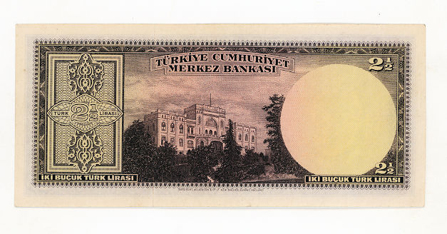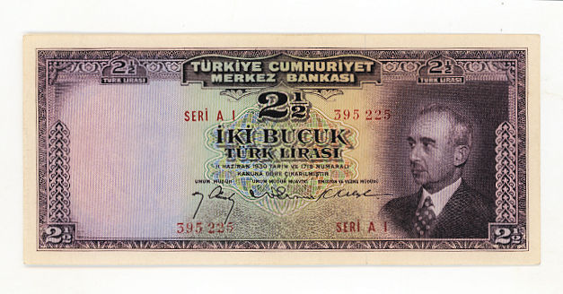 3. Emisyon 1. Tertip 2 buçuk Lira 1947-52 Pick#140 AU/EF