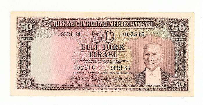 5. Emisyon 50 Lira 1956 *ND (1979) 3.tertip D05 harfi (Nadir) – çt *VF