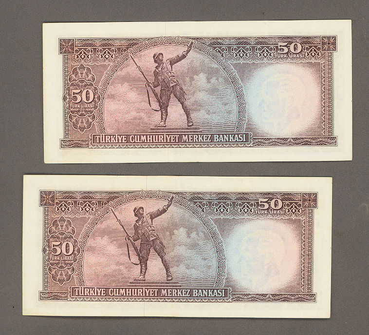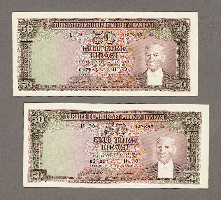5. Emisyon 50 Lira 1964 *ND (1976) 5th Emis. 7.ter. ççt / EF (2 adet takipli seri numara)