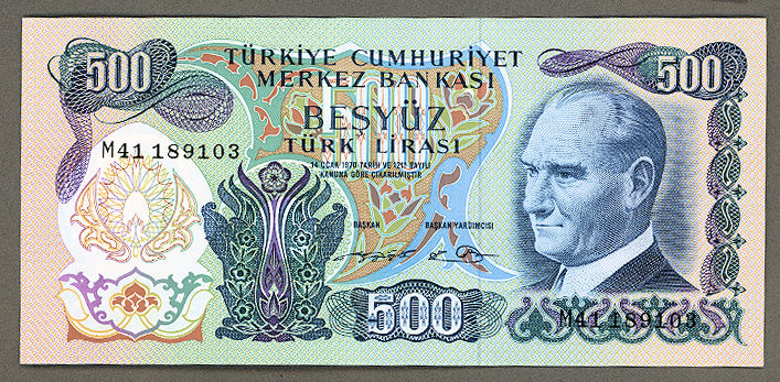 6. Emis. 2. Tertip 500 Lira 1974-84 M41 serisi çil – UNC