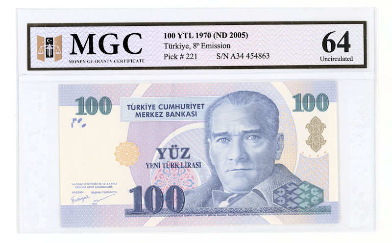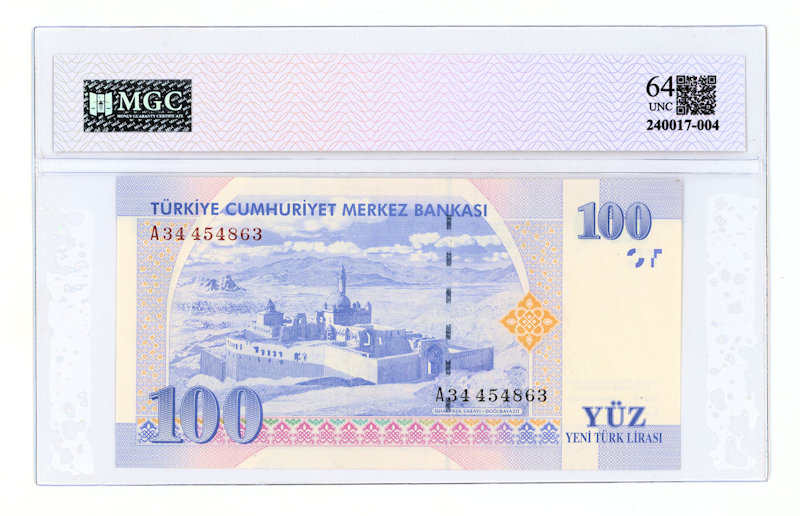 8. Emis. 100 Yeni Türk Lirası 2005 MGC 64 UNC – serial A34