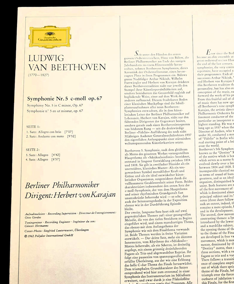 BEETHOVEN Symphonie 5 Berliner Phil- Herbert von Karajan Printed in Germany LP 8,5 / Kapak 8
