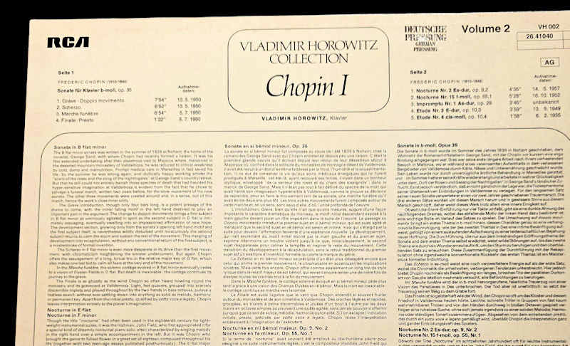 CHOPIN Vladmir Horowitz *Printed in Germany LP 8,5 / Kapak 8,5