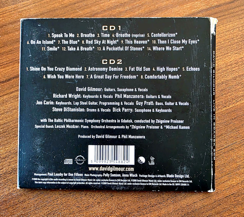 DAVID GILMOUR Live in Gdansk*Printed in E.U. Double CD-Cover 9/7,5