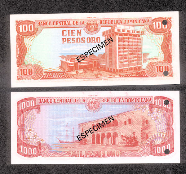 Ana Sayfa Banknotlar Dünya Banknot DOMINICANA 100 + 1000 Pesos Oro SPECIMEN – UNC