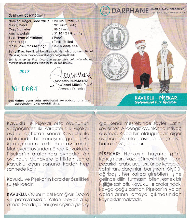 Geleneksel Türk Tiyatrosu Kavuklu – Pişekar 2017 Gümüş Hatıra Parası sertifikalı