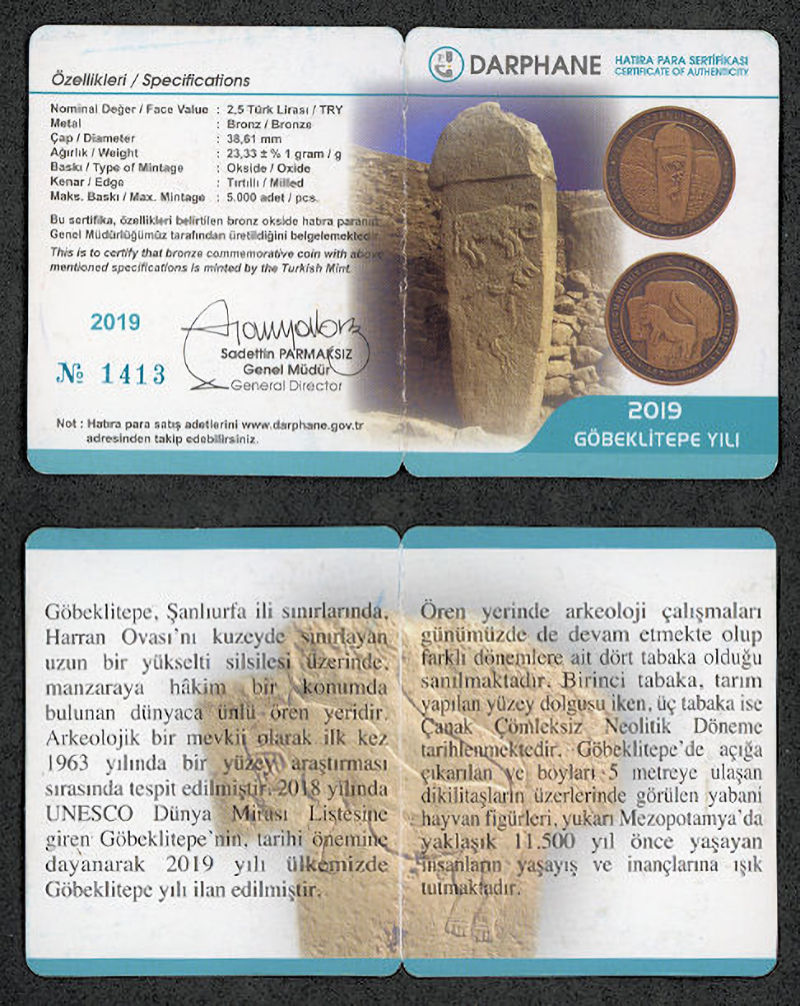 Göbeklitepe 2019 DARPHANE HATIRA Bronz Sertifikalı