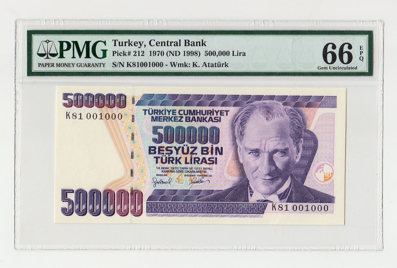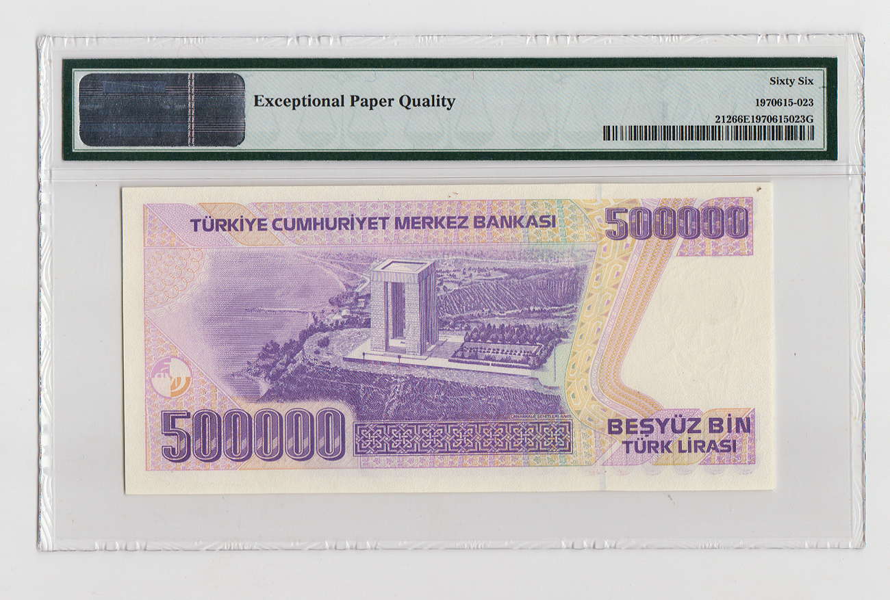 7. Emisyon 500 000 Lira 1997-2006 PMG 66 EPQ – UNC