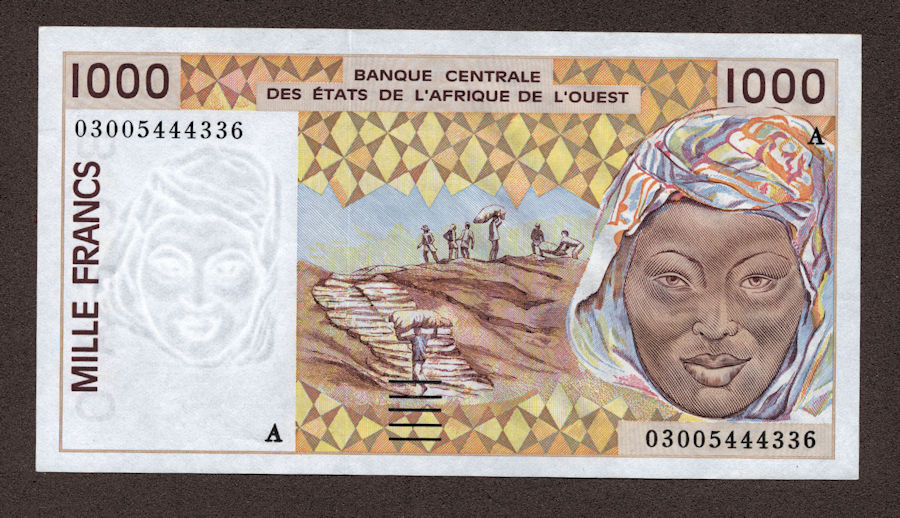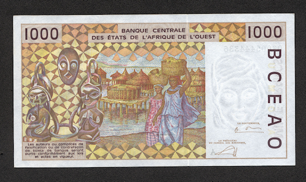 IVORY COAST Banque der Etats de L`AFRIQUE L`OUEST (A) 1000 FRANCS – UNC