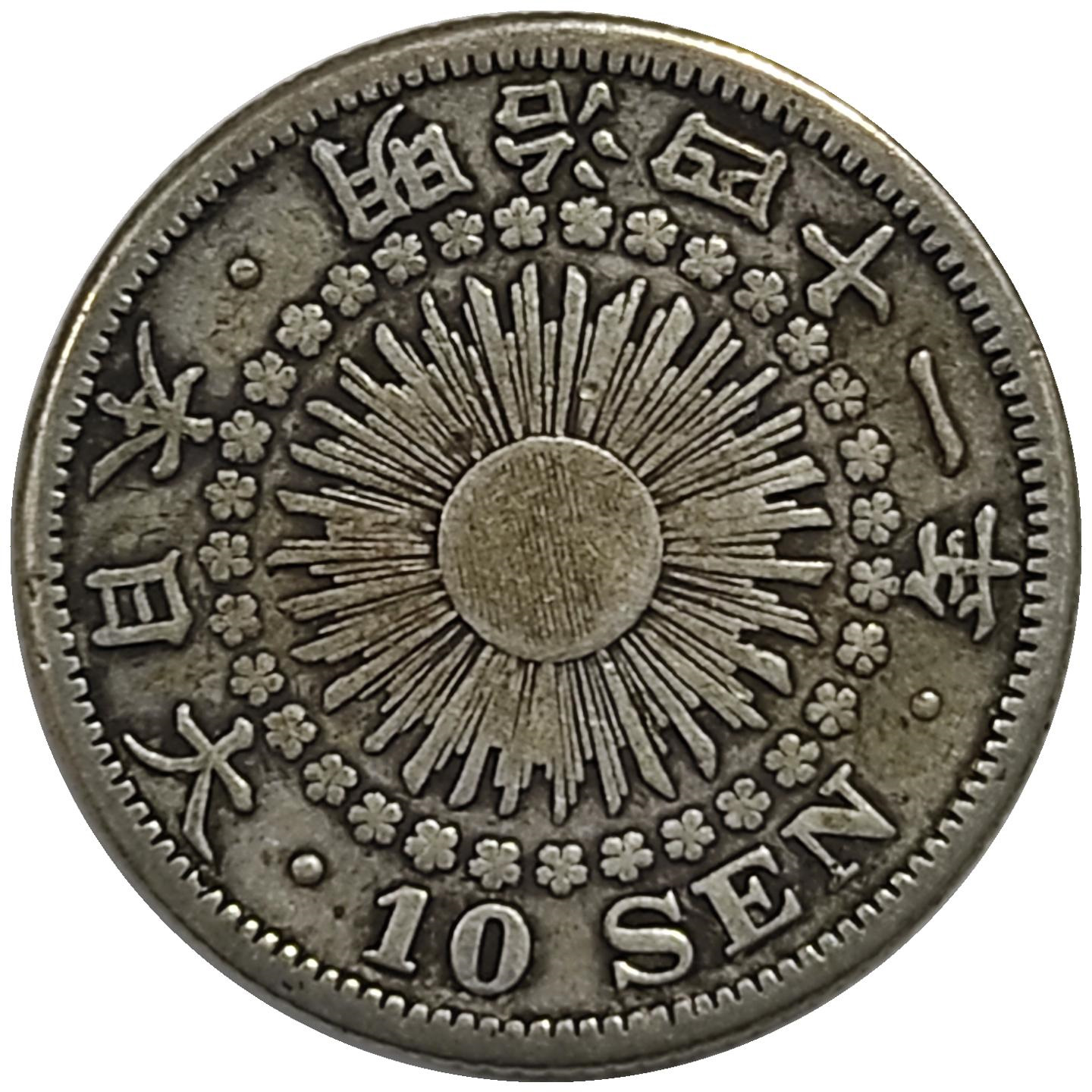 JAPAN 1908 YILI JAPONYA 10 SEN MEİJİ DÖNEMİ GÜMÜŞ 2.25 GR.