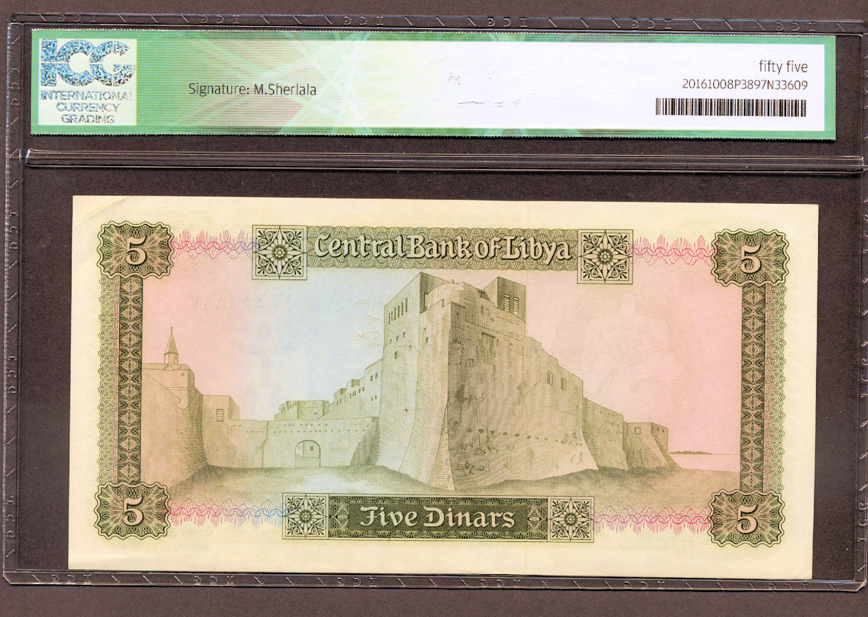 Ana Sayfa Banknotlar Orta Doğu Banknot Libya 5 Dinar 1971 Pick#36a (without insription) ICG 55 *AU