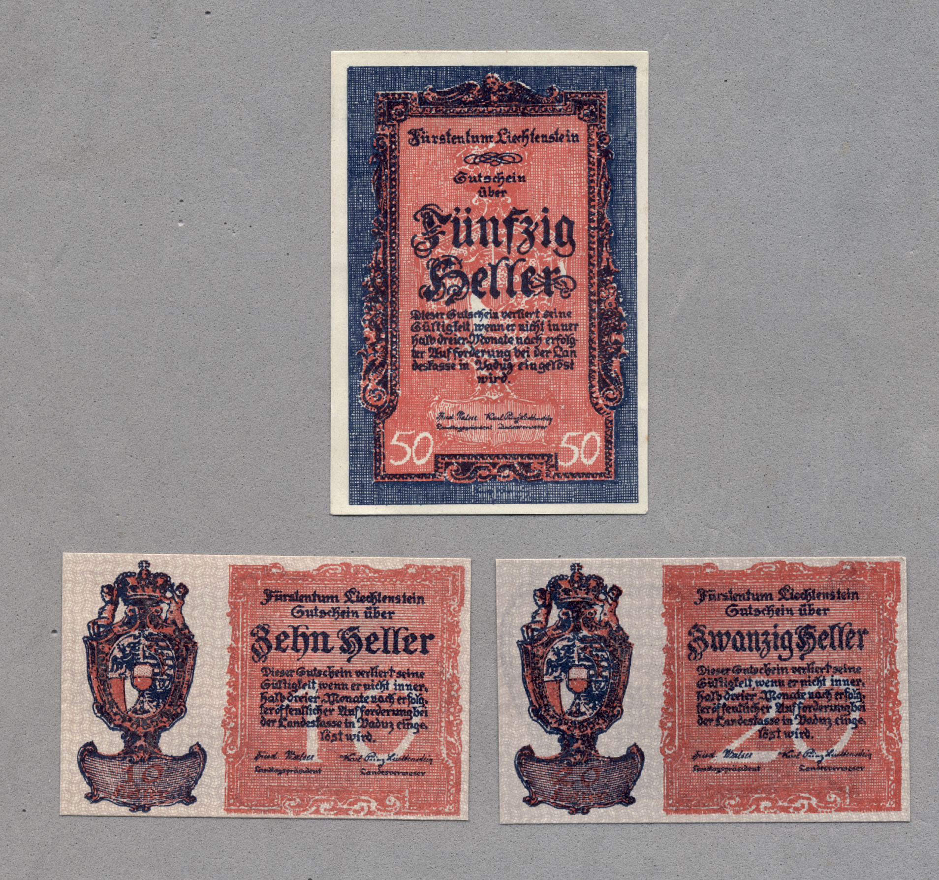 LIECHTENSTEIN 3 Banknoten UNC