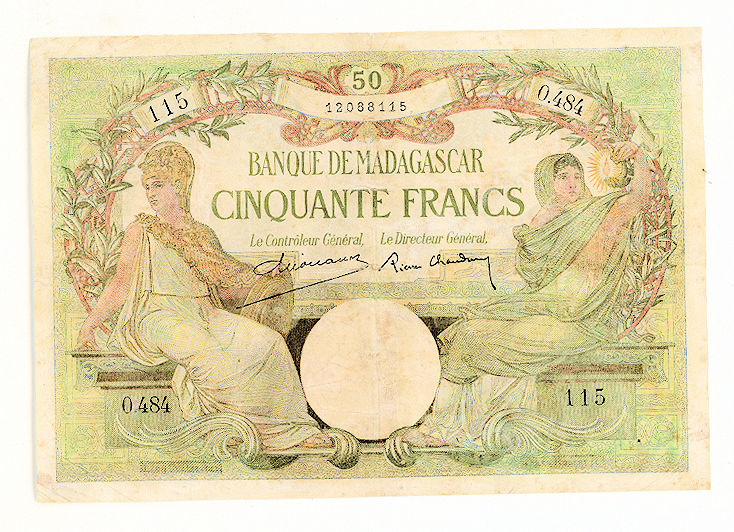 Ana Sayfa Banknotlar Africa Banknotes MADAGASCAR 50 Francs 1937 Pick#38 VF+