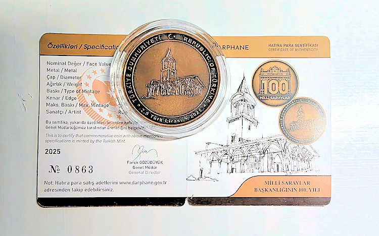 Milli Saraylar b. 100 senesi Hatıra Parası sertifikalı