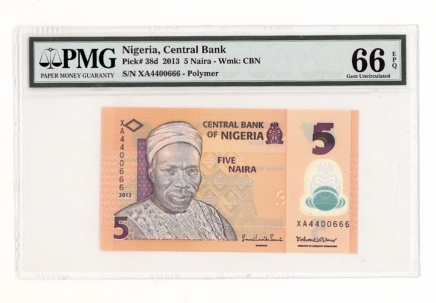 NIGERIA 5 Naira 2013 – PMG 66 EPQ – UNC