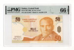 8. Emisyon 50 Yeni Türk Lirasi A01 PMG 66 EPQ – UNC çil