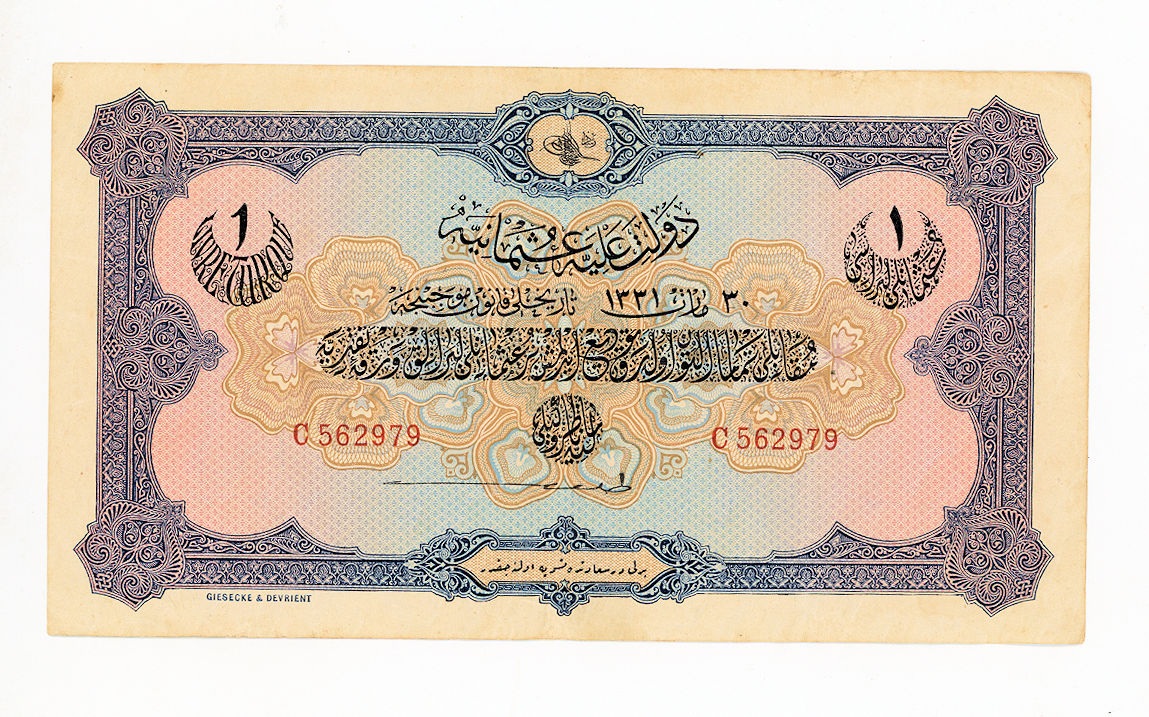 OSMANLI OTTOMAN EMP. 1 Lira 6.8. 1332 yılı 1 Lira H harfi *Talat-Janko imzalı – EF *ççt