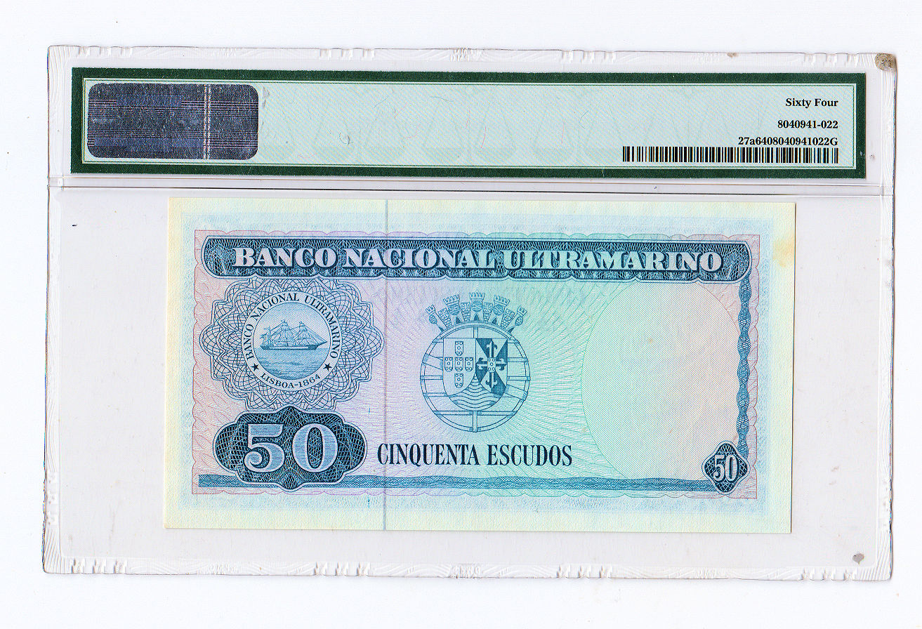 TIMOR 50 Escudos 1967 PMG 64 sertifikalı çil