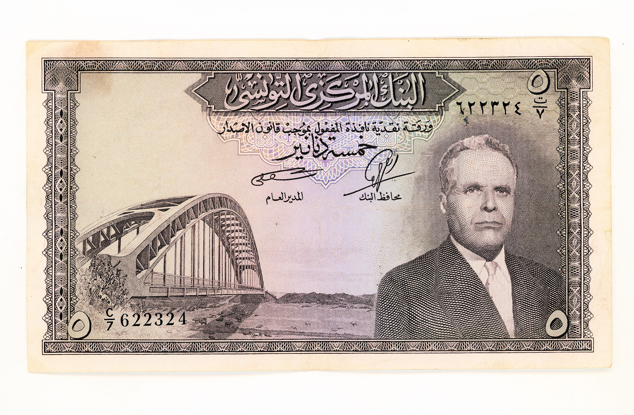 TUNUS TUNESIA 5 Dinar 1968 Habib Burgiba *çt banknot