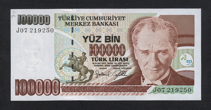 7. Emisyon 100 000 Lira ND 1991 – UNC çil banknot