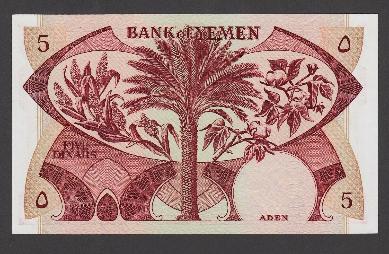 YEMEN Bank of Yemen ADEN 5 Dinars ND (1984) Pick # 8b – UNC – çil